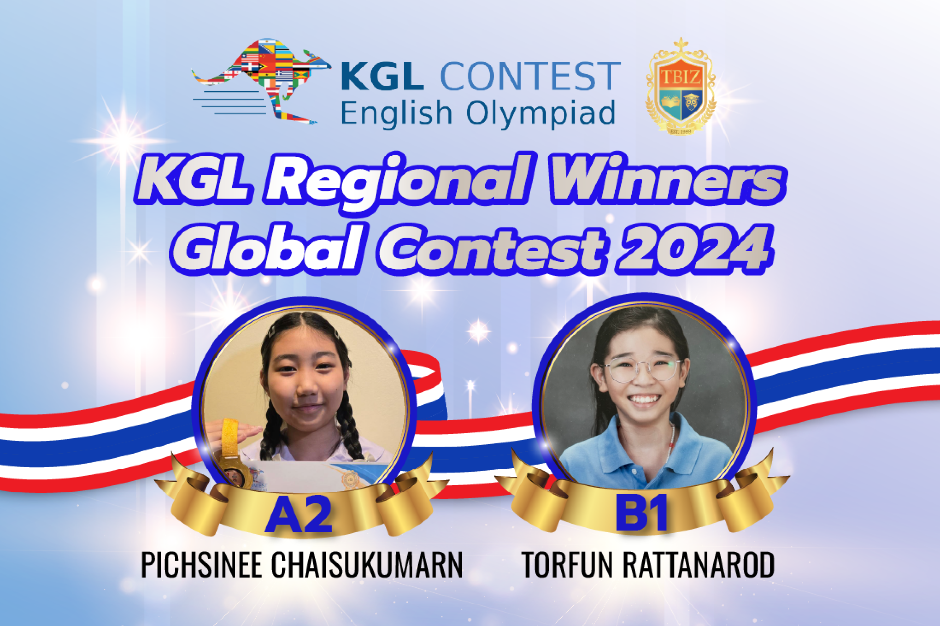 ขอแสดงความยินดีกับผู้แข่งขัน KGL Contest English Olympiad ทุกคน โดยตัวแทนประเทศไทย 2 คนได้รับคัดเลือกเป็นตัวแทนภูมิภาค ไปแข่งขันรอบที่ 3 Global Contest ณ ประเทศกรีซ ในวันที่ 4-6 ตุลาคม 2567